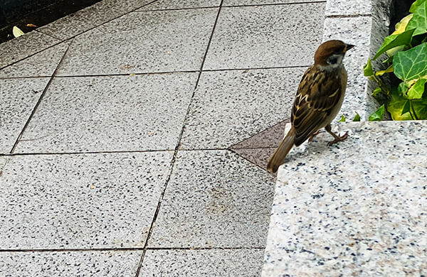 さてさて毎度なお昼ご飯タイムは雀の餌付け場所で。