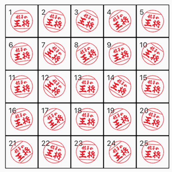 慎ましく慎ましく餃子2人前とご飯中で1スタンプいただき