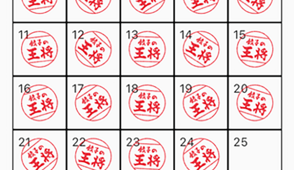 慎ましく慎ましく餃子2人前とご飯中で1スタンプいただき