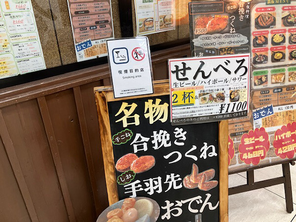 まずはお隣の焼き鳥屋だったかで「せんべろ」POPを発見。